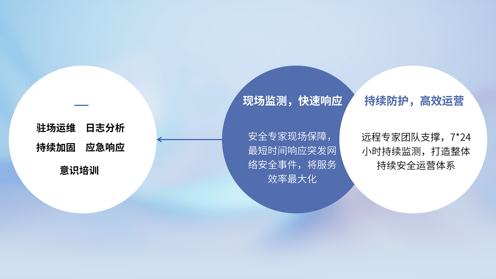 针对客户行业特性,,,提供专属的一站式安全管理服务,,,,帮助客户全面感知网络空间威胁,,,,通过安全专家的线上、、、、线下防护支持,,实现风险闭环,,将安全保障常态化,,,,为客户打造常态化安全运维运营服务。。